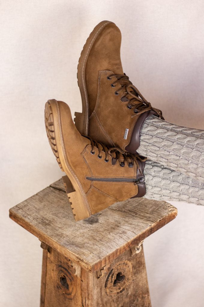 Pánska zimná kožená členková obuv s teplou podšívkou, funkčnou membránou a s postranným zipsom pre ľahké obutie.
