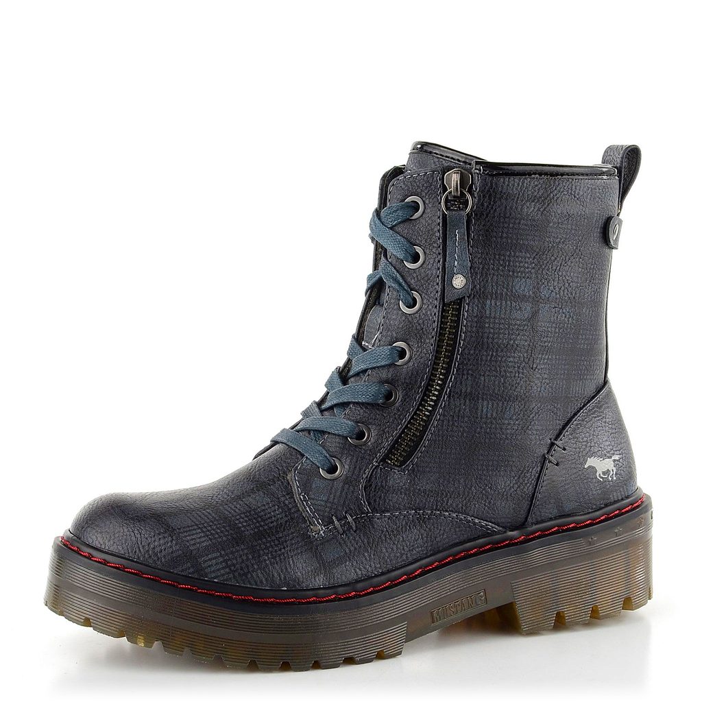 Mustang členkové topánky kárované na vysokej platforme modré 1345-502