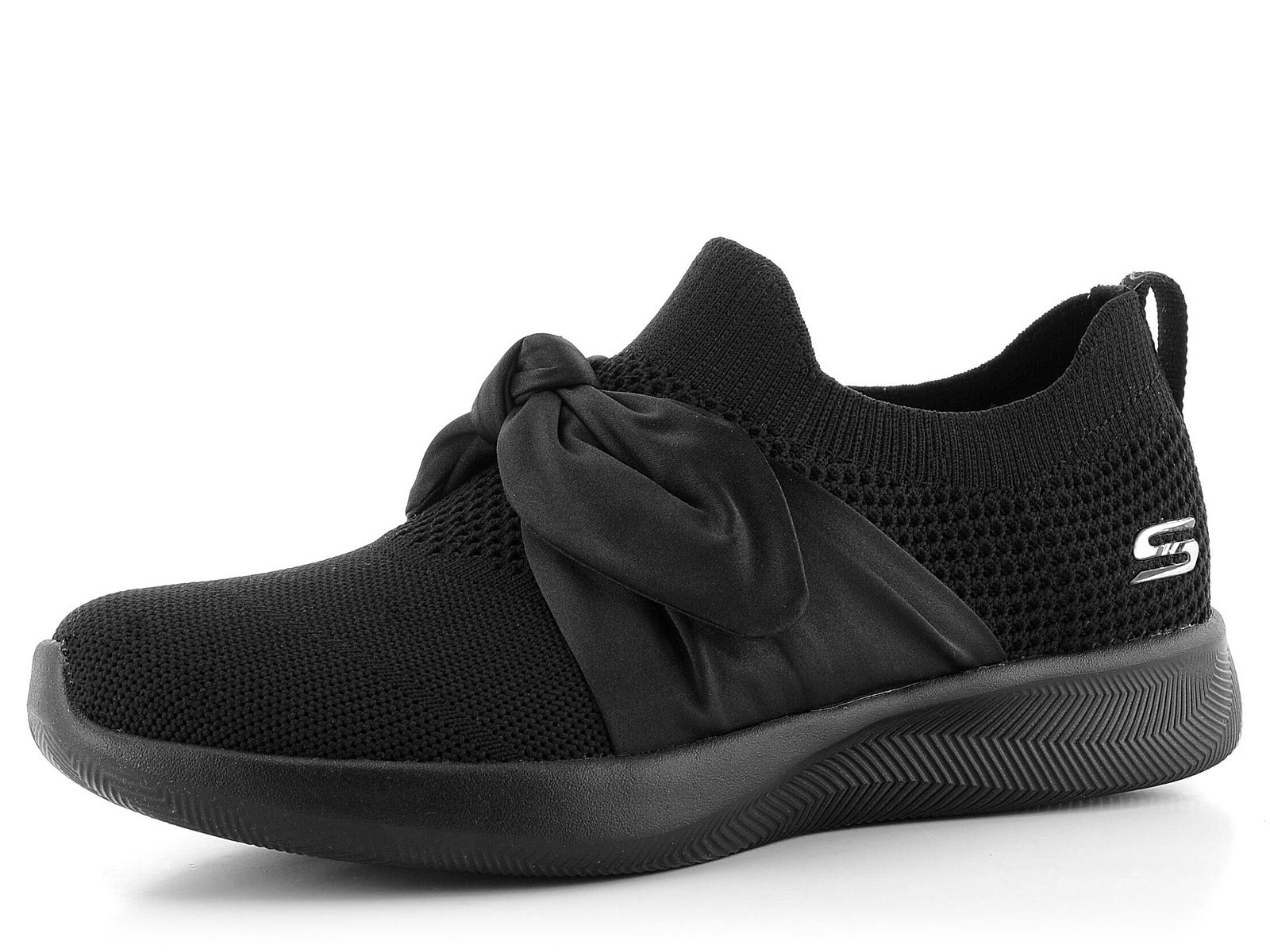 Ultraľahké dámske tenisky z textilného úpletu s ponožkovým lemom a módnou saténovou mašľou.