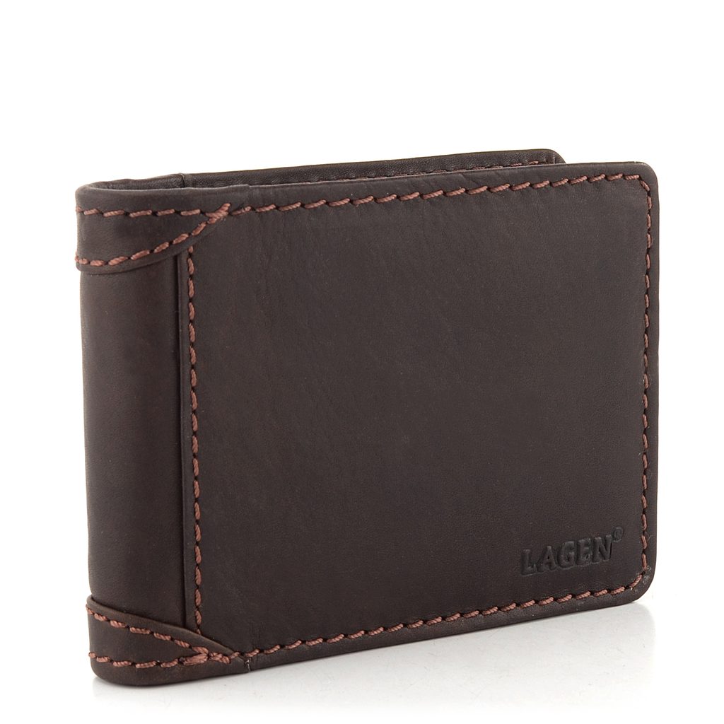 Luxusná pánska peňaženka od značky Lagen s mnohými vreckami a chráneným vonkajším chrbtom.