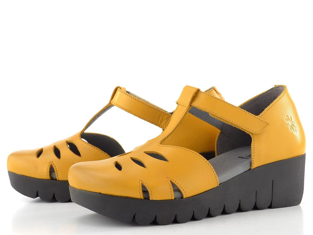 Fly London sandály na klínu mustard P145224001 - 39