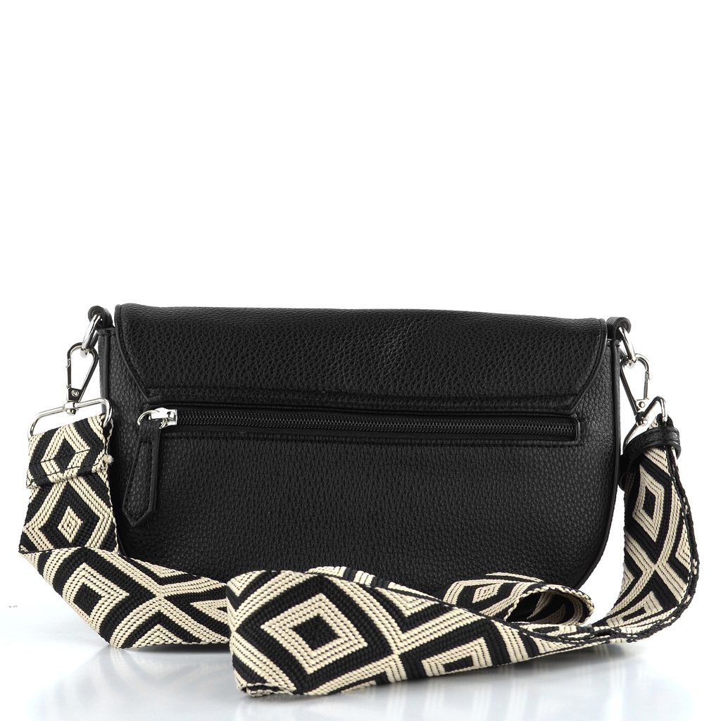 Menšia dámska crossbody kabelka v čiernej farbe s dvoma vymeniteľnými popruhmi.