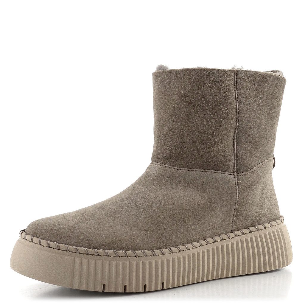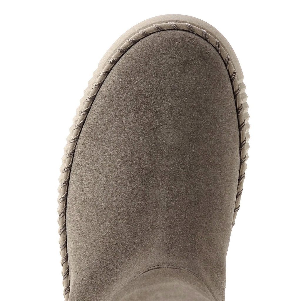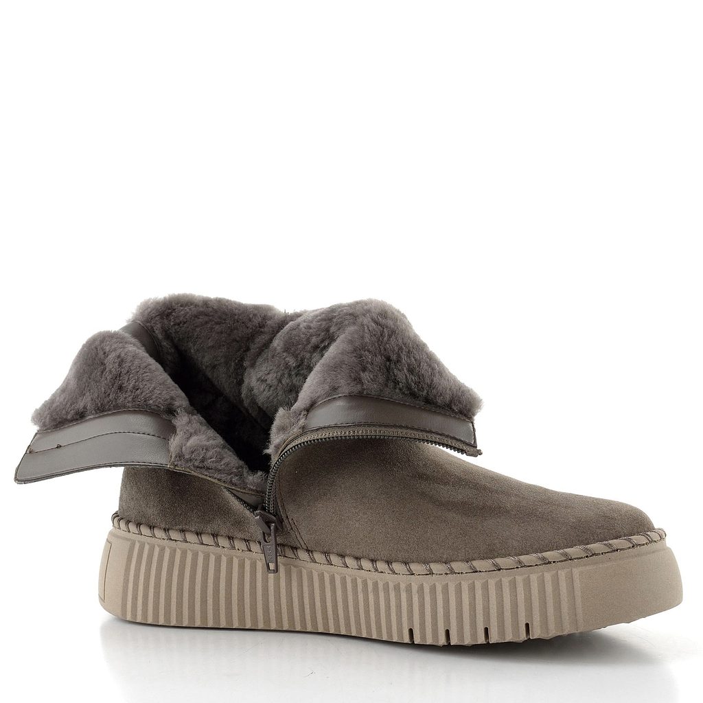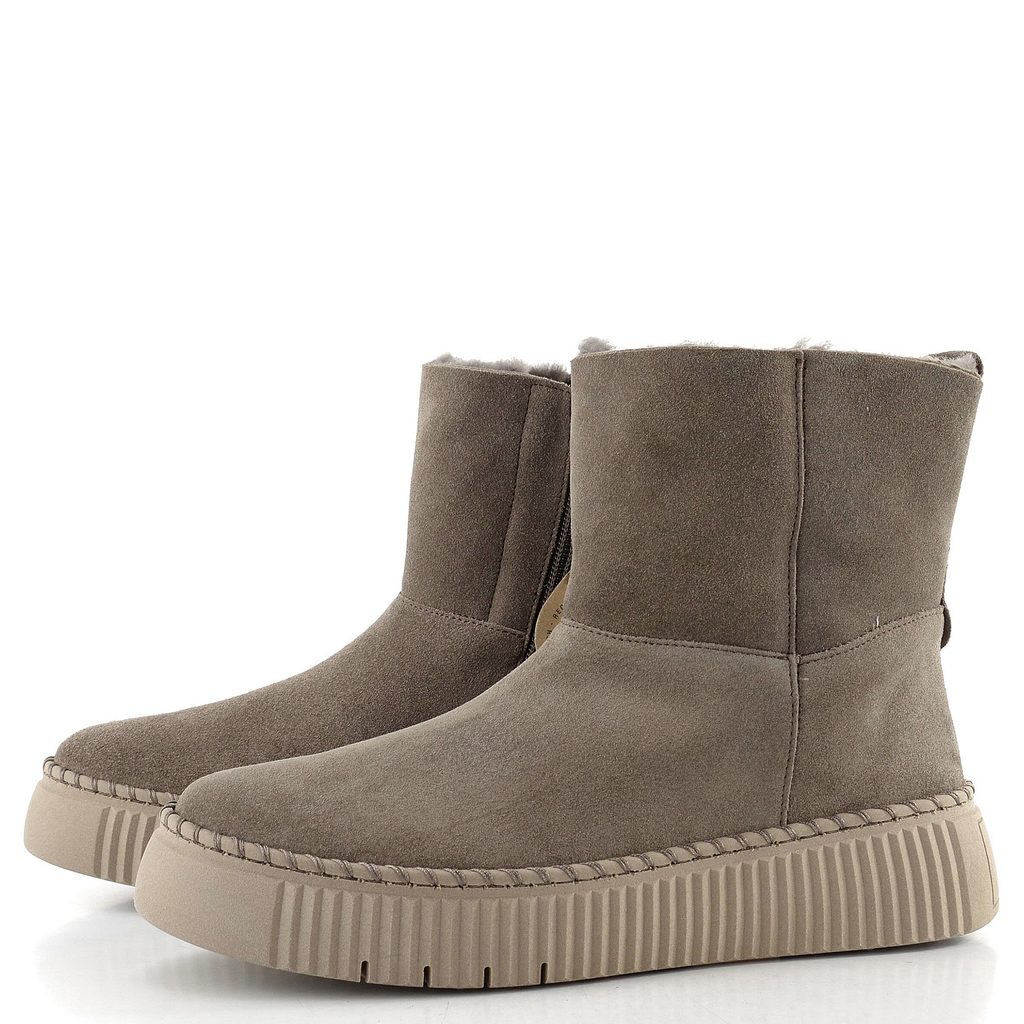 Dámský kotník ze semišové kůže s teplou vlněnou podšívkou a vysokou rovnou platformou.