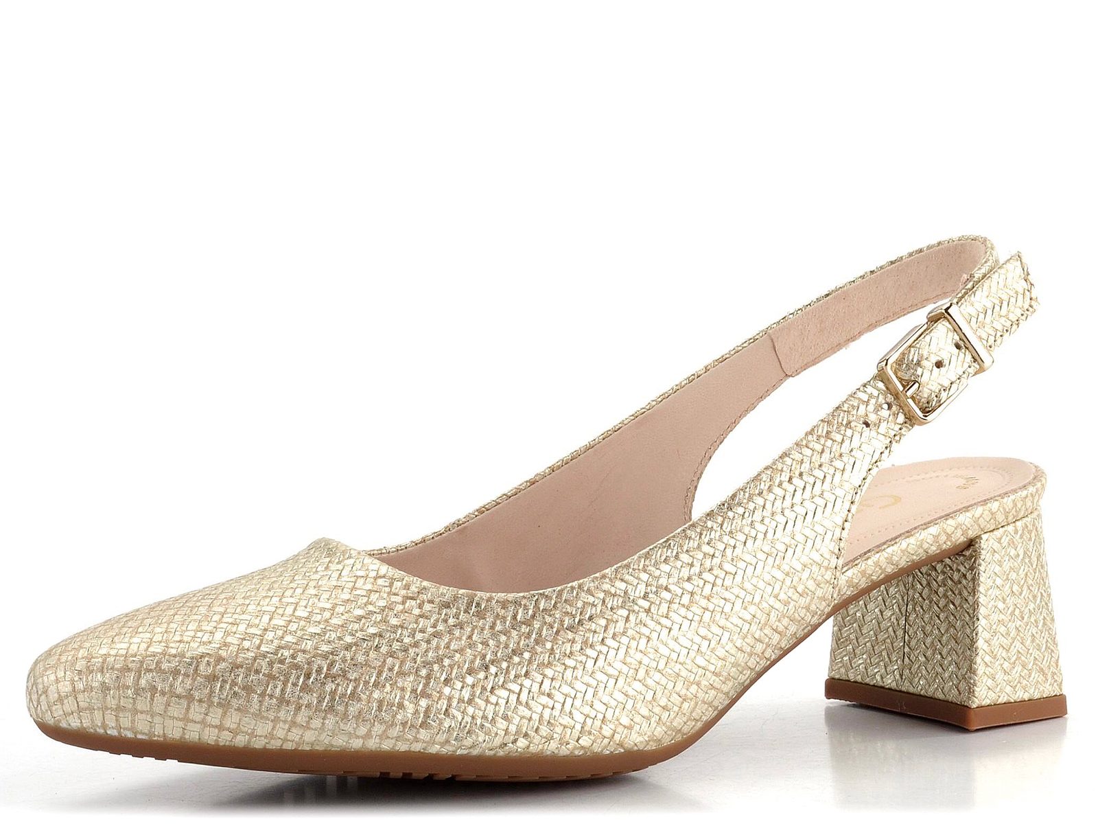 Dámske lodičky v elegantnom a veľmi pohodlnom strihu s voľnou pätou a stabilným potiahnutým podpätkom.