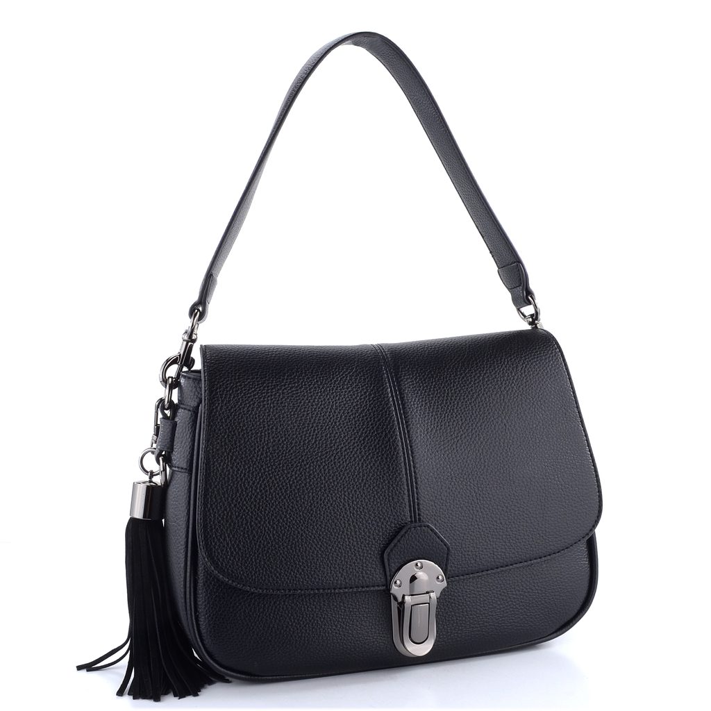 Luxusní dámská klopnová kabelka přes rameno v oblíbené černé barvě s přídavným crossbody popruhem.