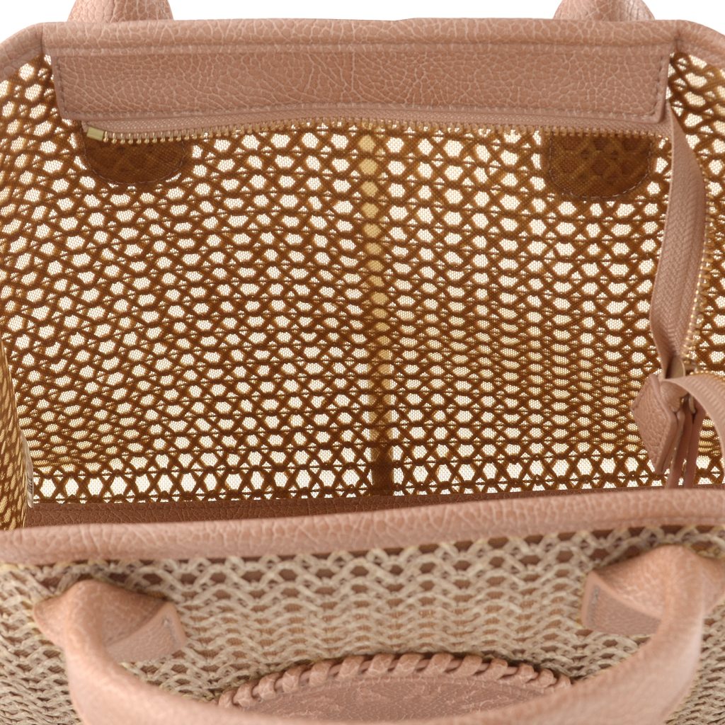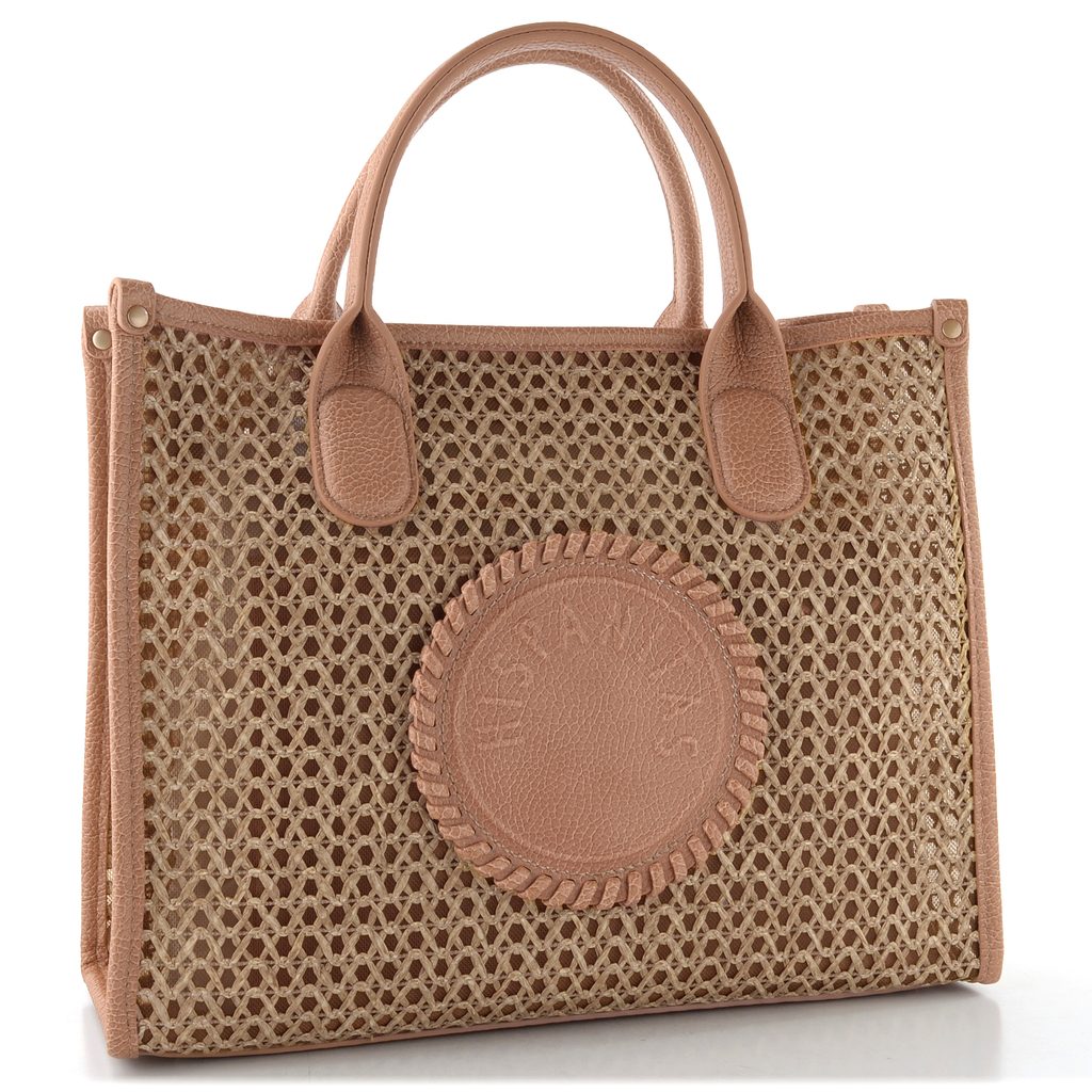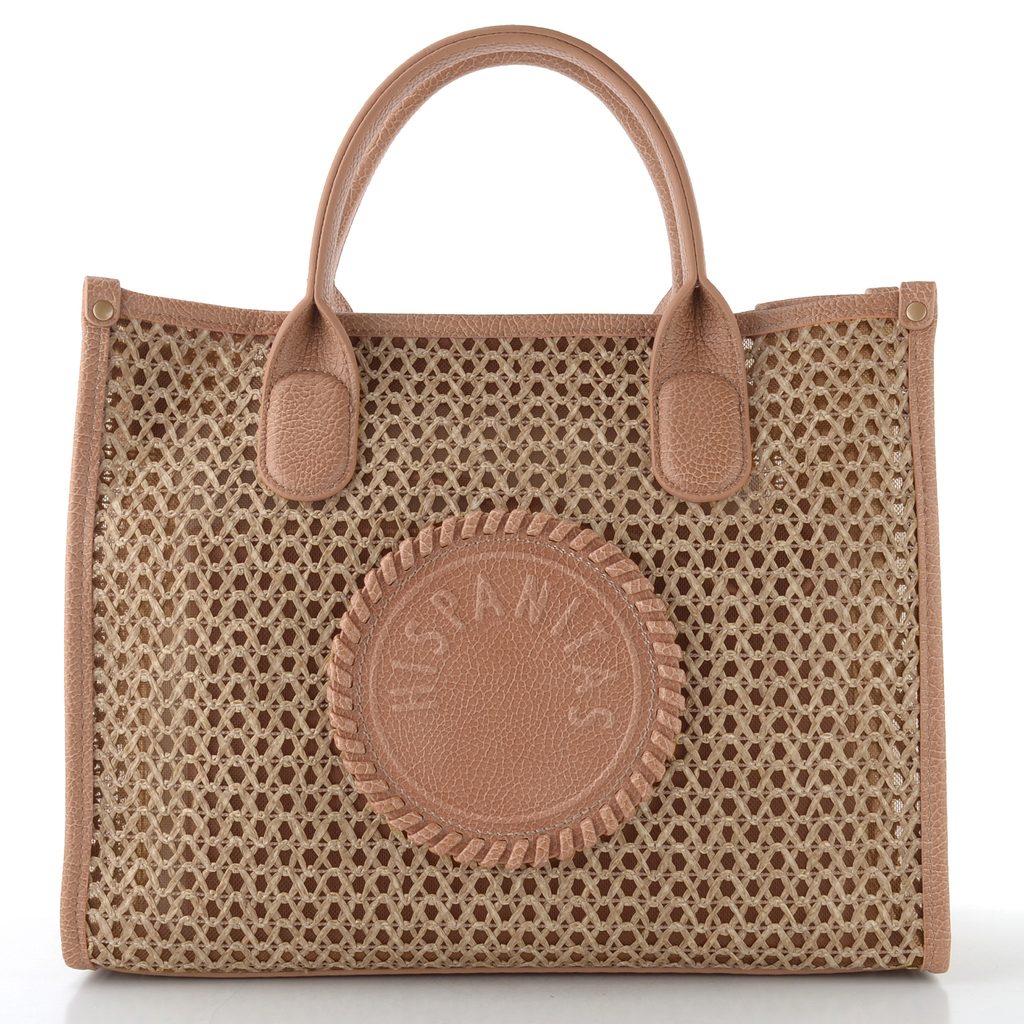 Luxusní dámská kabelka v módní kombinaci splétaného lýka a síťoviny od španělské značky Hispanitas.
