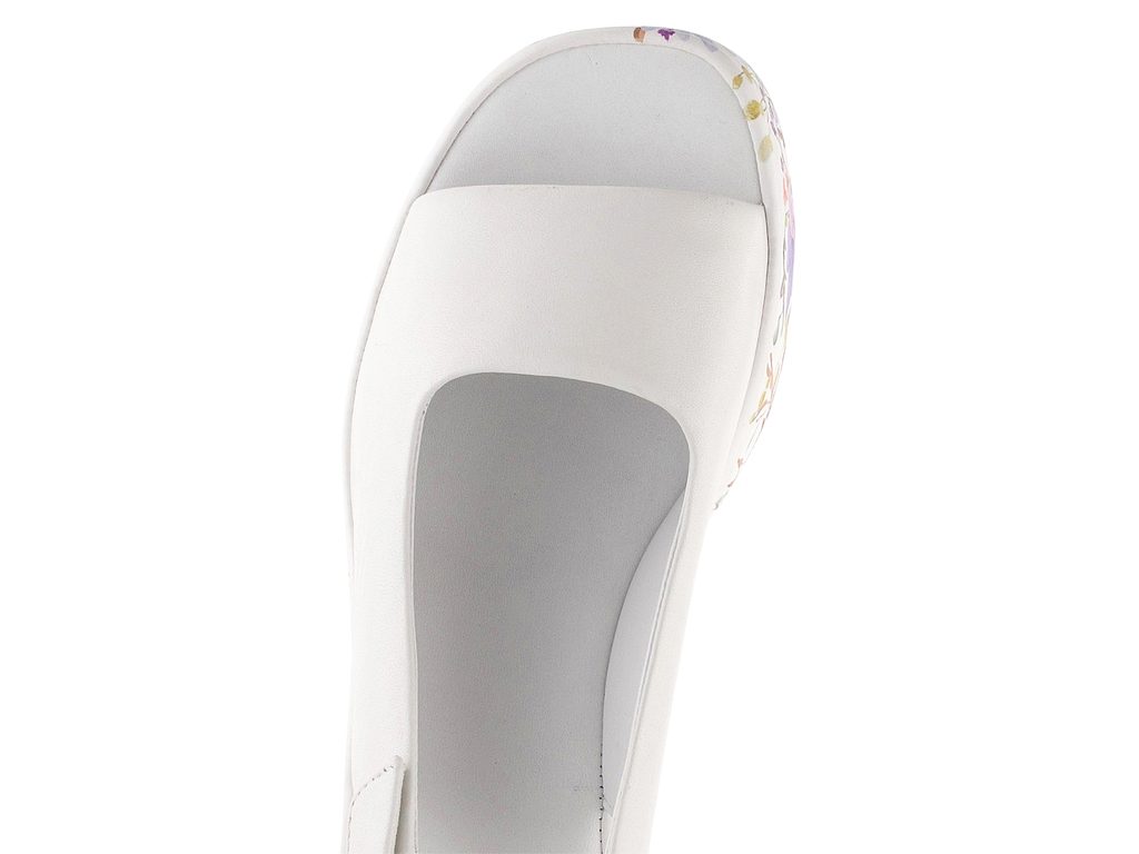 Luxusné kožené dámske sandálky v bielej farbe s farebným potiahnutým klinom.