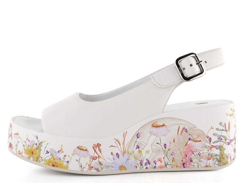 - vysoká platforma s klinom potiahnutá kožou s farebnou potlačou lúčneho kvetu