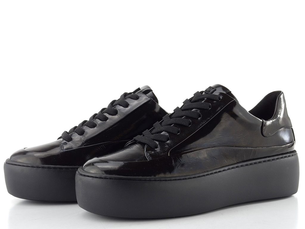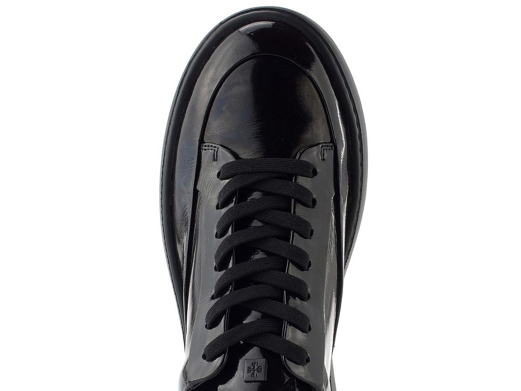 Luxusné šnurovacie tenisky z lesklej kože v čiernej farbe s vysokou módnou platformou.