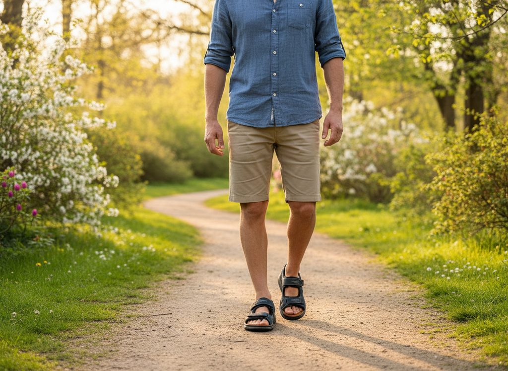 Pánske šľapky s variabilnými pásikmi na suché zipsy a stielkou potiahnutou brúsenou kožou.