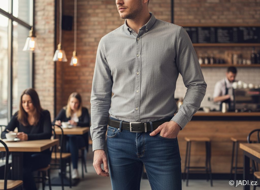 Pánsky luxusný opasok v čiernej farbe so striebornou sponou, vhodný ako spoločenský aj na bežné nosenie.