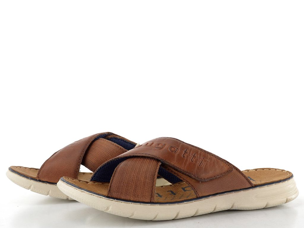Bugatti hnedé pánske krížené šľapky so suchým zipsom 311-A3282-3500 - 41