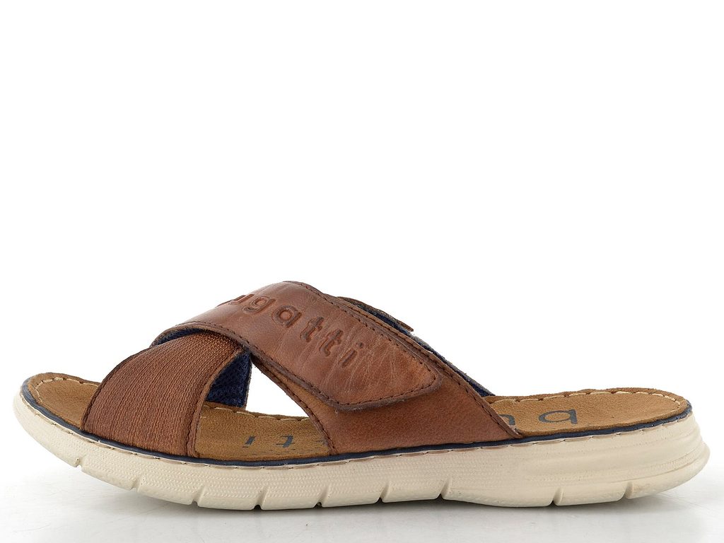 Bugatti hnedé pánske krížené šľapky so suchým zipsom 311-A3282-3500