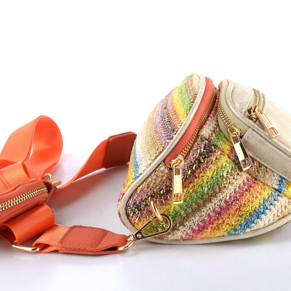 Štýlová ľadvinka v pestrofarebnom prevedení s nastaviteľným crossbody pásikom a malú etue.