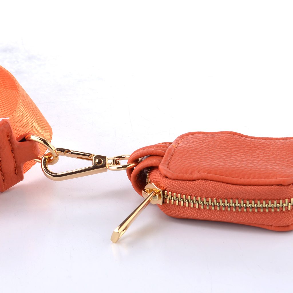 - odopínateľný textilný pásik v oranžovej farbe s nastaviteľnou dĺžkou 85-135 cm a maličkou odopínateľnou etue