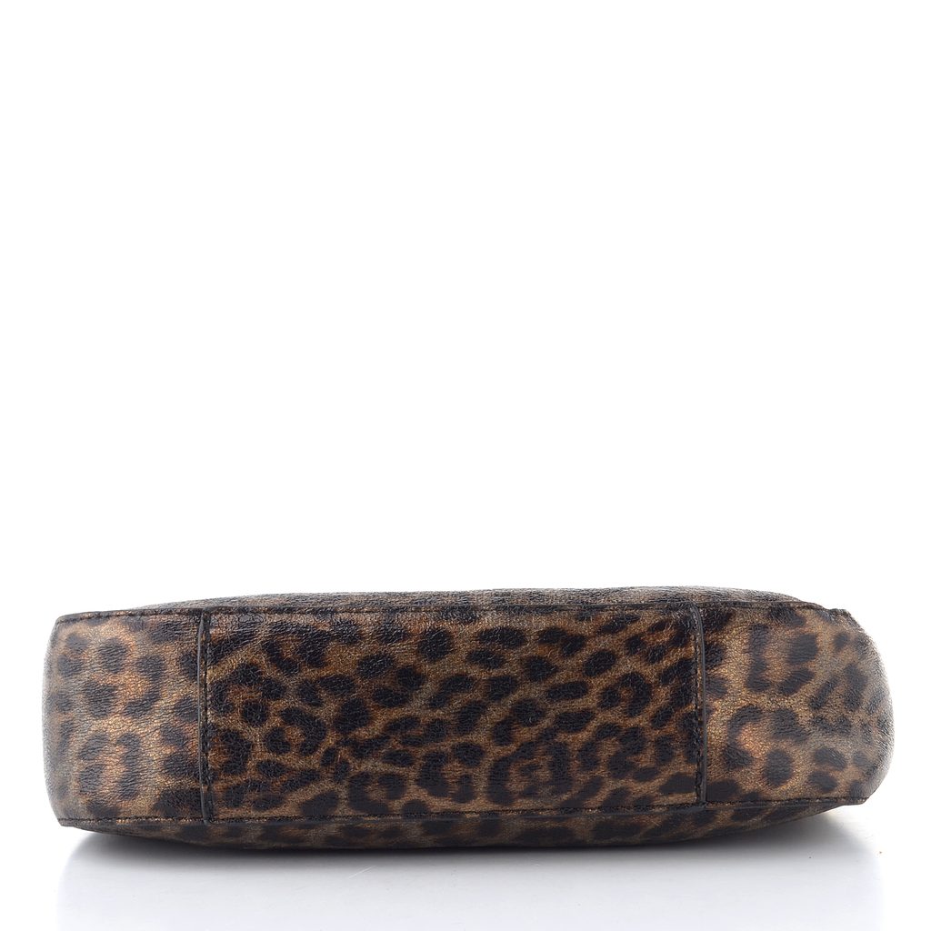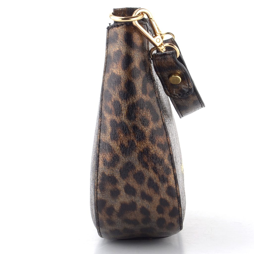 Dámska malá kabelka/listová kabelka s leopardím metalickým vzorom a vymeniteľnými popruhmi.