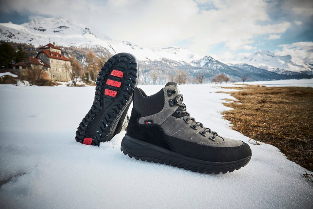 Vychádzková pánska členková obuv v šedo-čiernom prevedení, s teplou vlnenou podšívkou a funkčnou membránou.