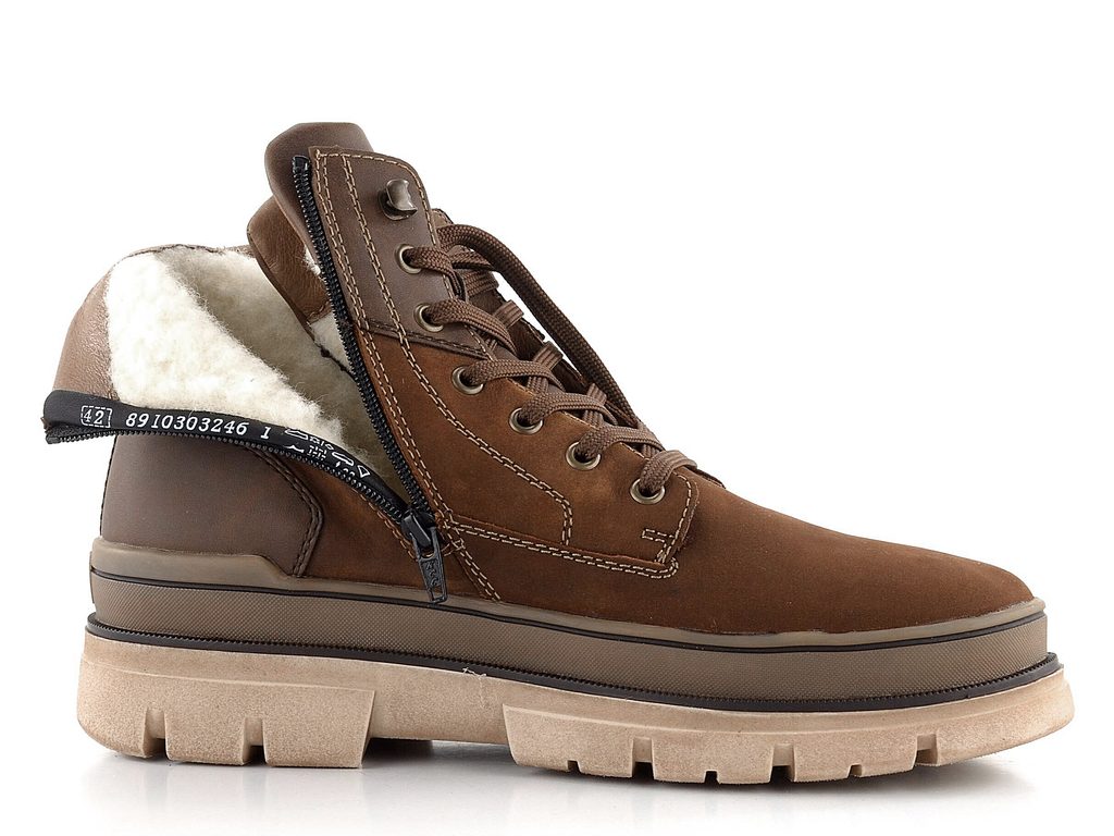 Pánska kožená členková obuv vyteplená vlnenou ovčou strižou a vybavená funkčnou membránou.