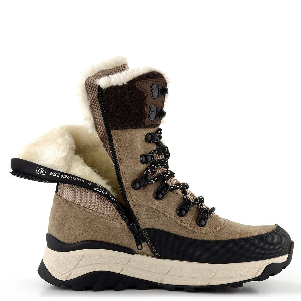 Dámska vyššia vychádzková členková obuv, s teplou vlnenou podšívkou a funkčnou vodoodpudivou membránou.