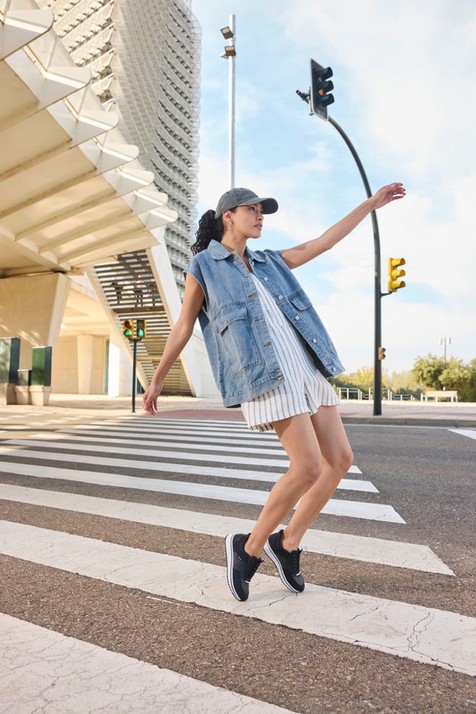 Širší dámské tenisky bez zavazování s unikátní funkcí Ready2GO pro snadné obouvání.