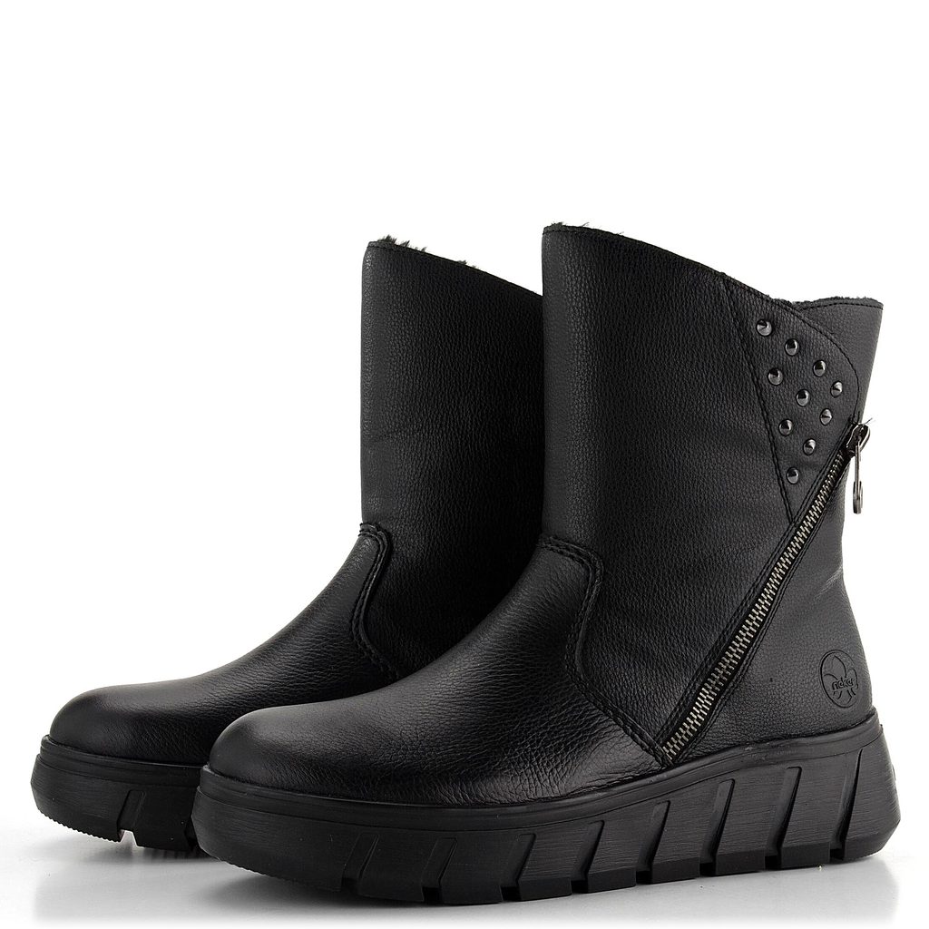 Komfortná a pevná dámska členková obuv s vyteplením a vysokou podošvou od značky Rieker.