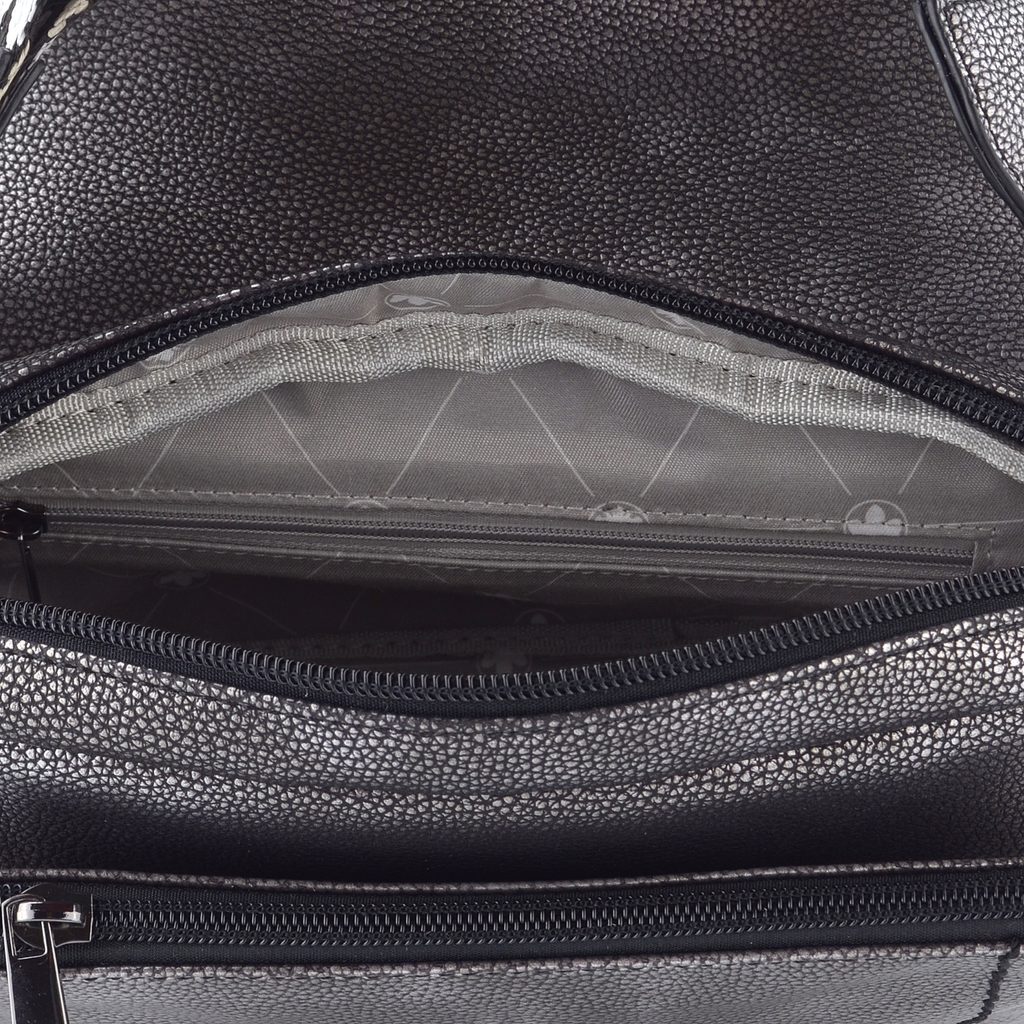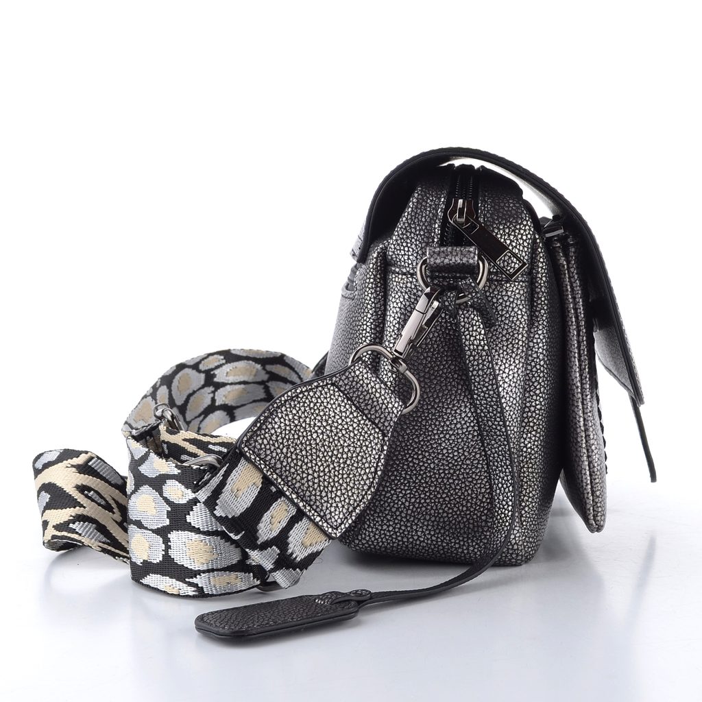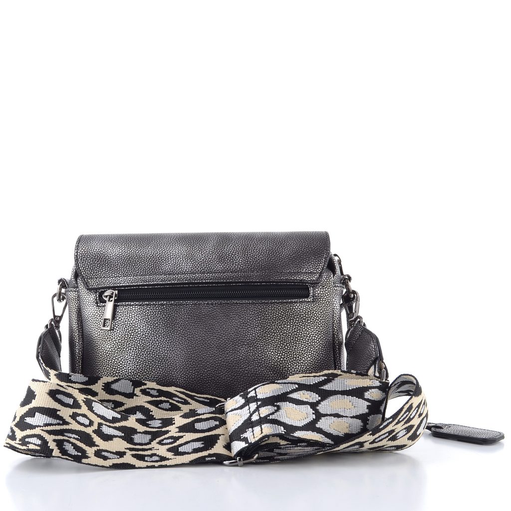 Elegantná dámska crossbody kabelka v starostriebornej farbe s výrazným ramenným popruhom.