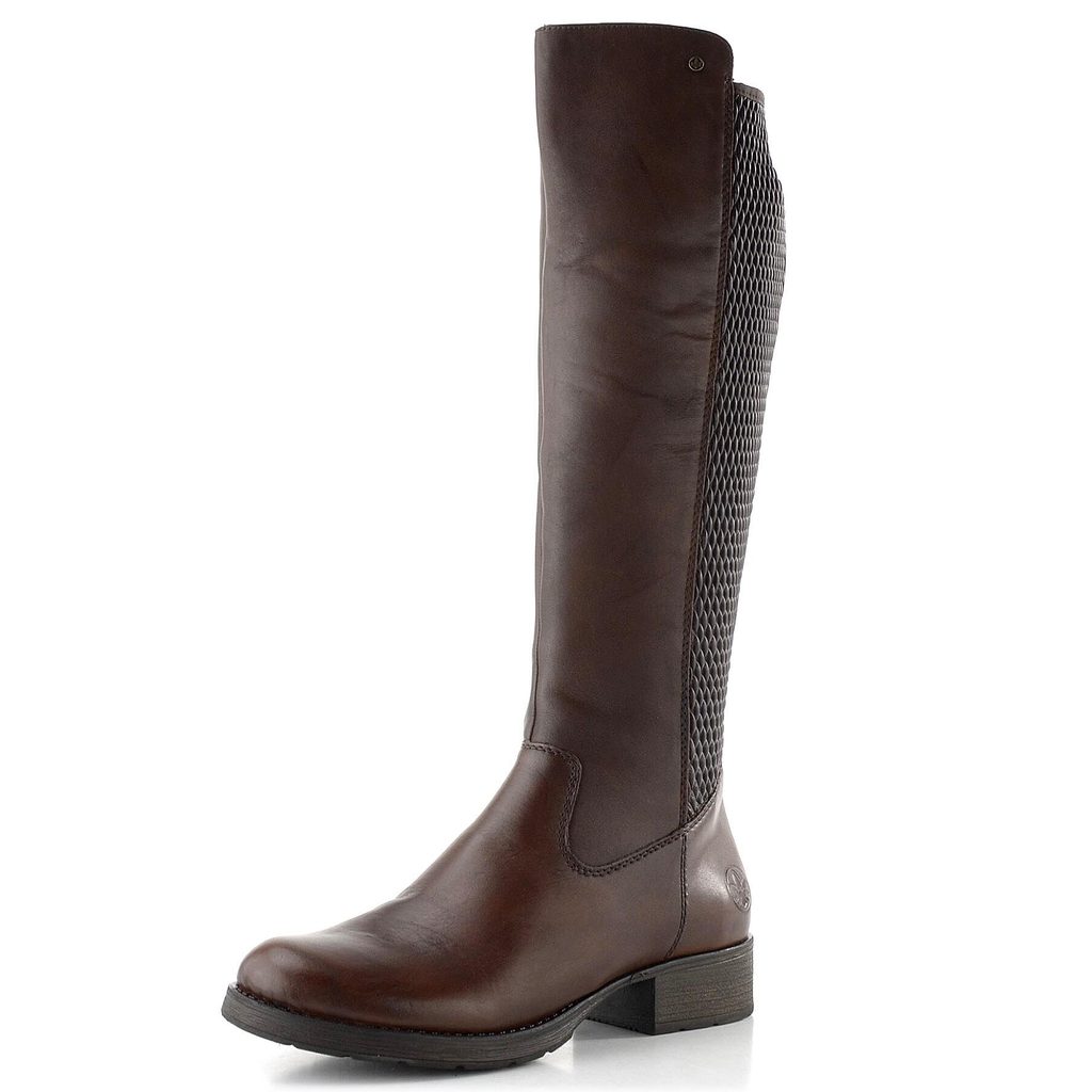 Hnedé dámske kožené čižmy s pružným lýtkom od značky Rieker.