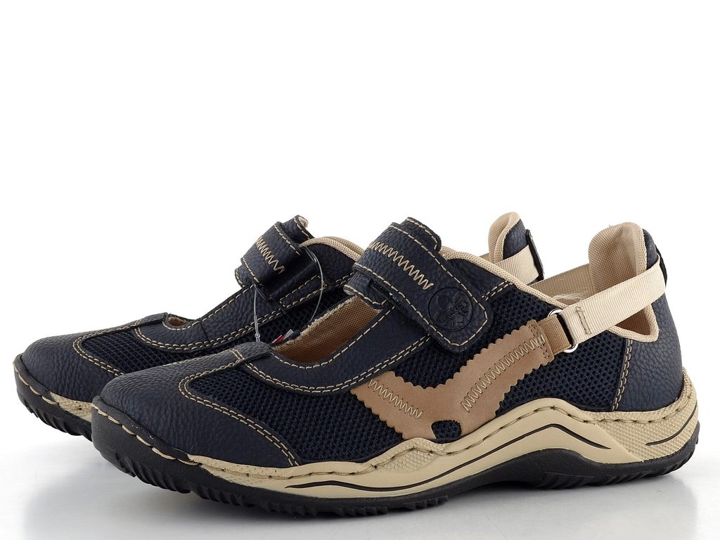 Rieker otvorené poltopánky na suchý zips modré L0575-14 - 37
