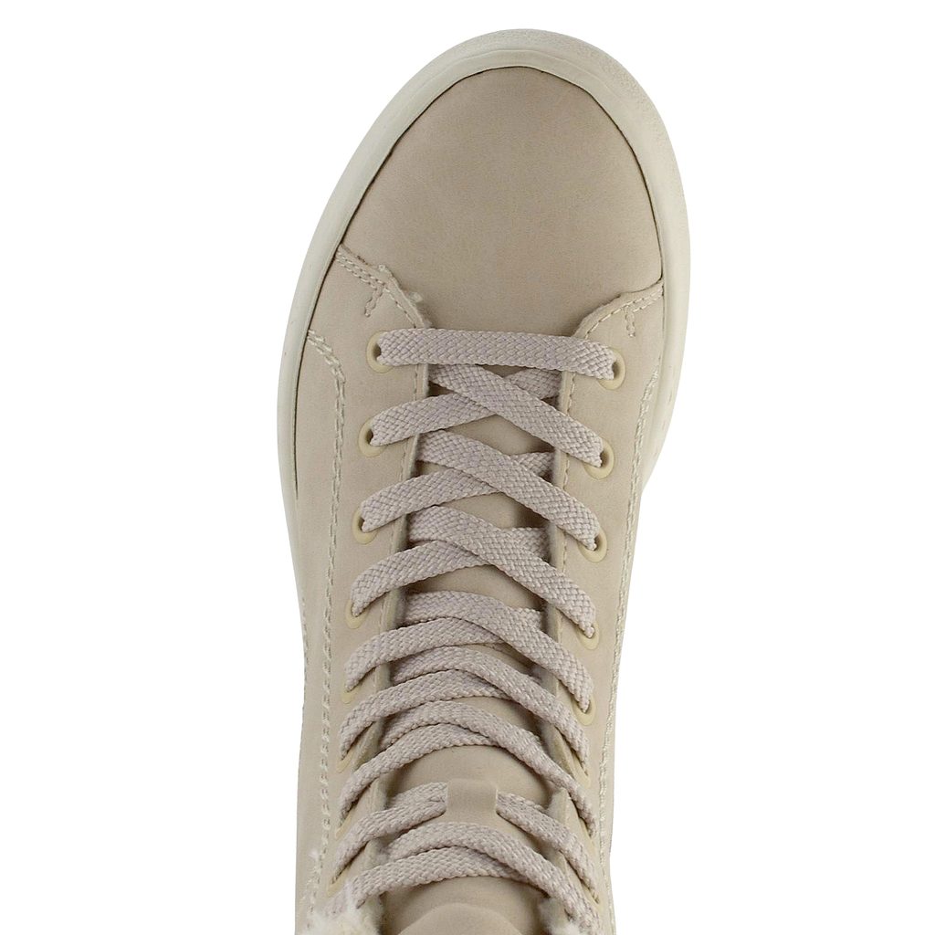 Šnurovacia dámska členková obuv vo svetlo béžovej farbe, s teplou baránkovou podšívkou a vyššou rovnou platformou.