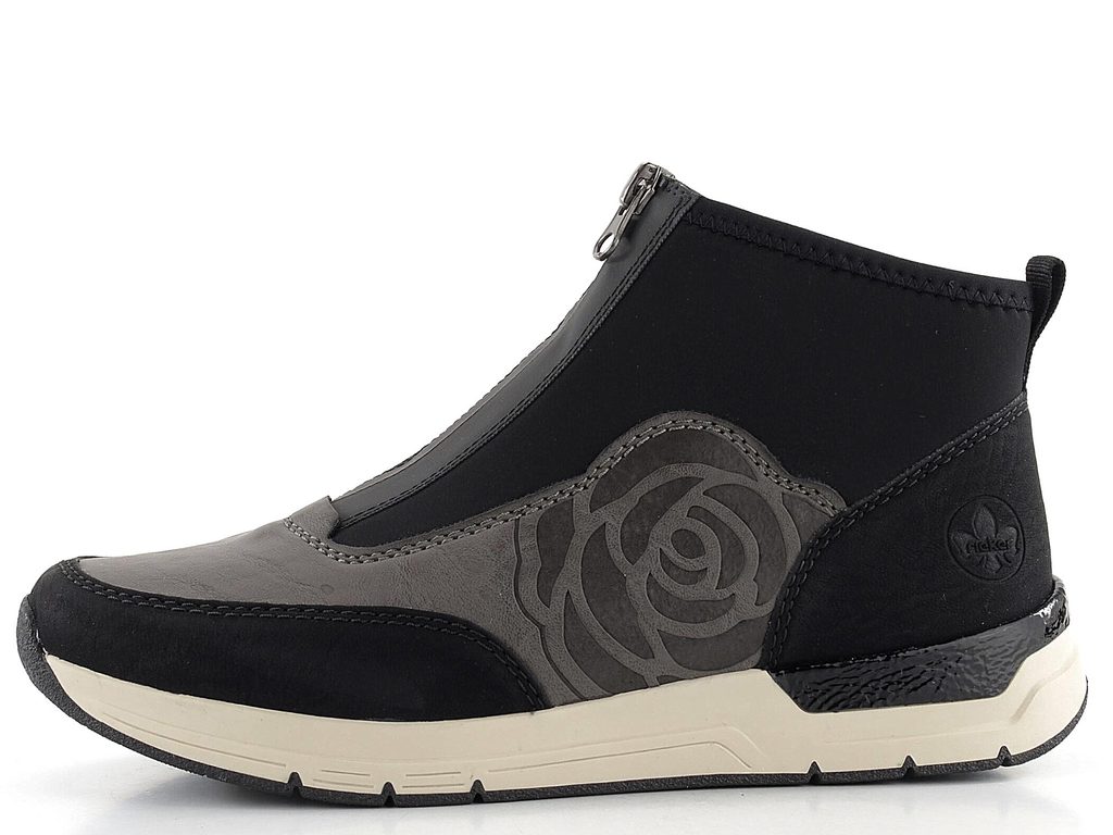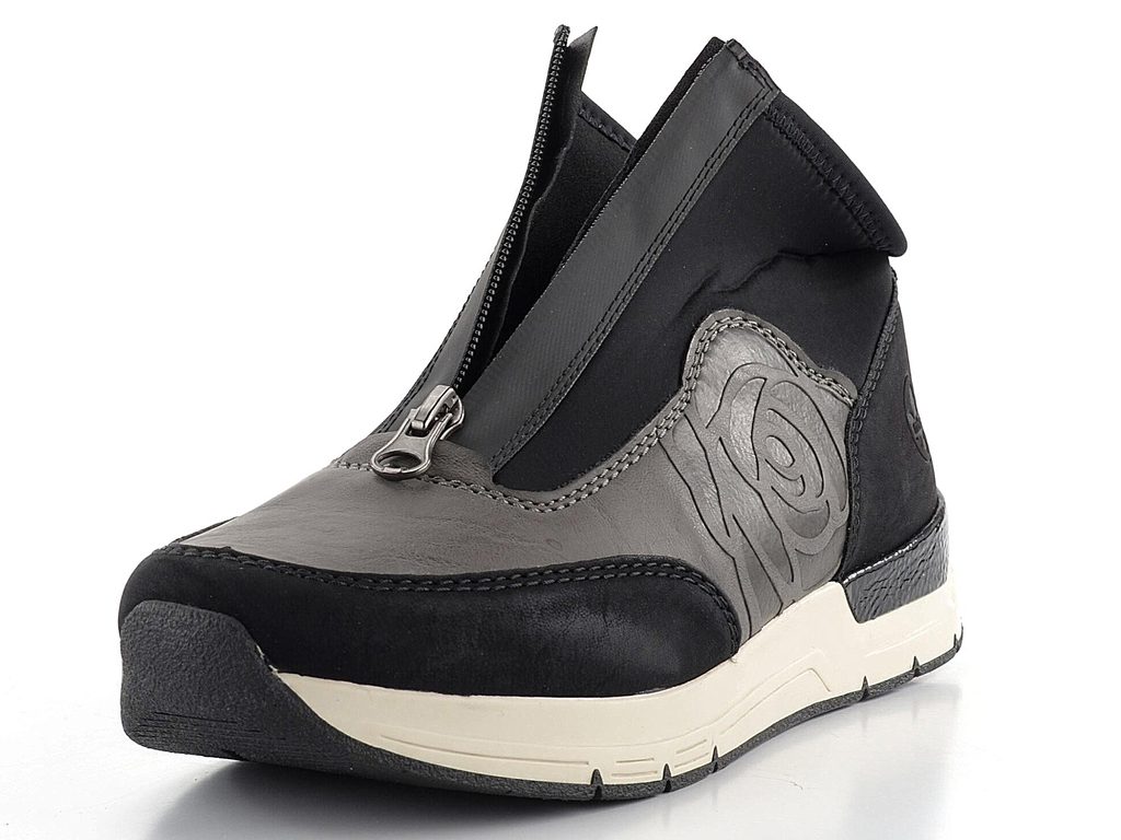 Rieker športovejšia členková obuv s predným zipsom čierna/šedá 58956-00
