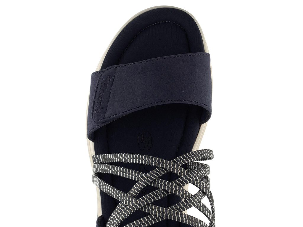 Dámske sandálky v tmavo modrej farbe, s nastaviteľnými pásikmi, pružným priehlavkom a extra mäkkou stielkou z pamäťovej peny.