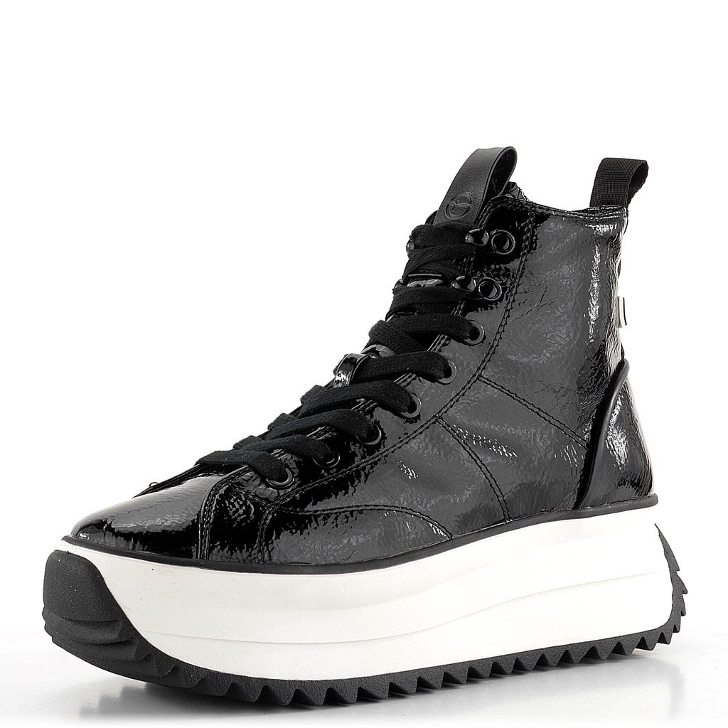 Tamaris šněrovací kotník na vysoké platformě Black Patent 1-25291-43