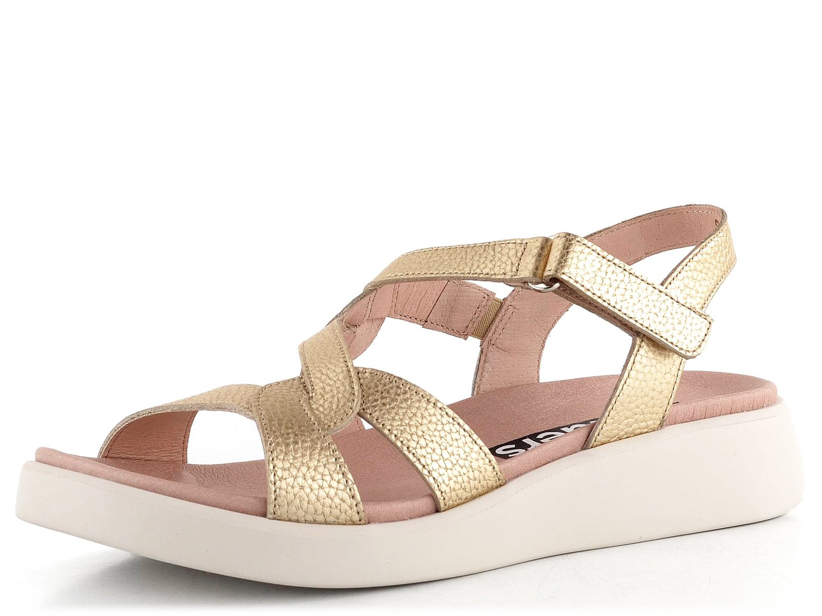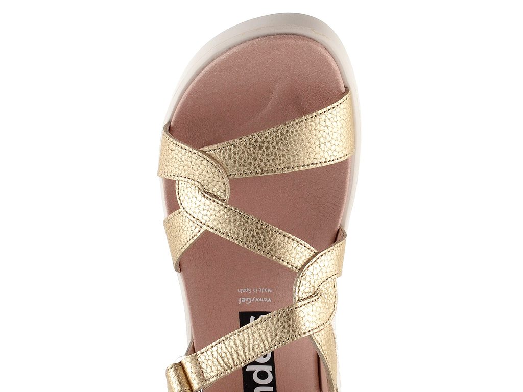 Dámske kožené sandále v metalickom prevedení na komfortnej podošve s malým klinom.