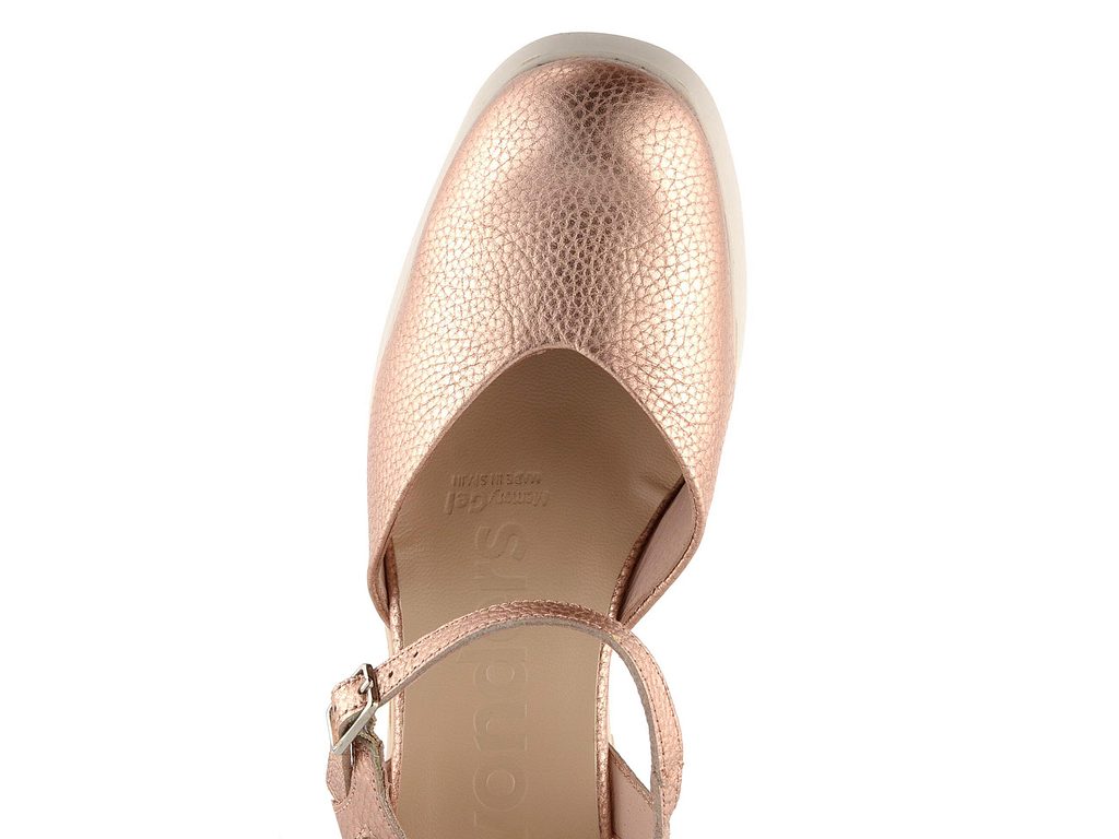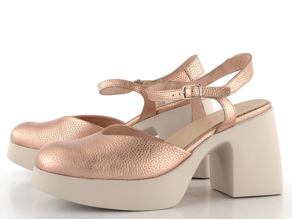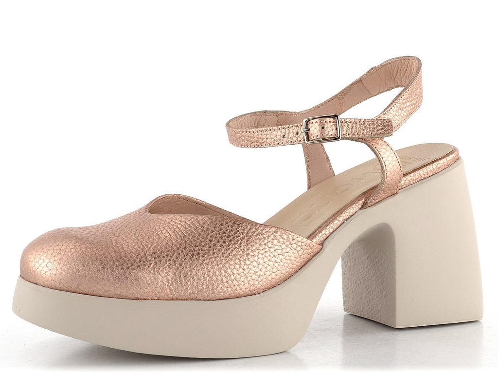Dámské metalické sandály s uzavřenou špičkou a širokým podpatkem od španělské značky Wonders.